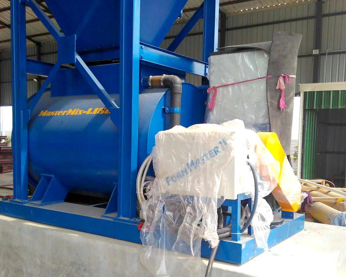 - Trạm trộn được tích hợp băng tải, thùng cân và thùng trộn MasterMix 1.15E