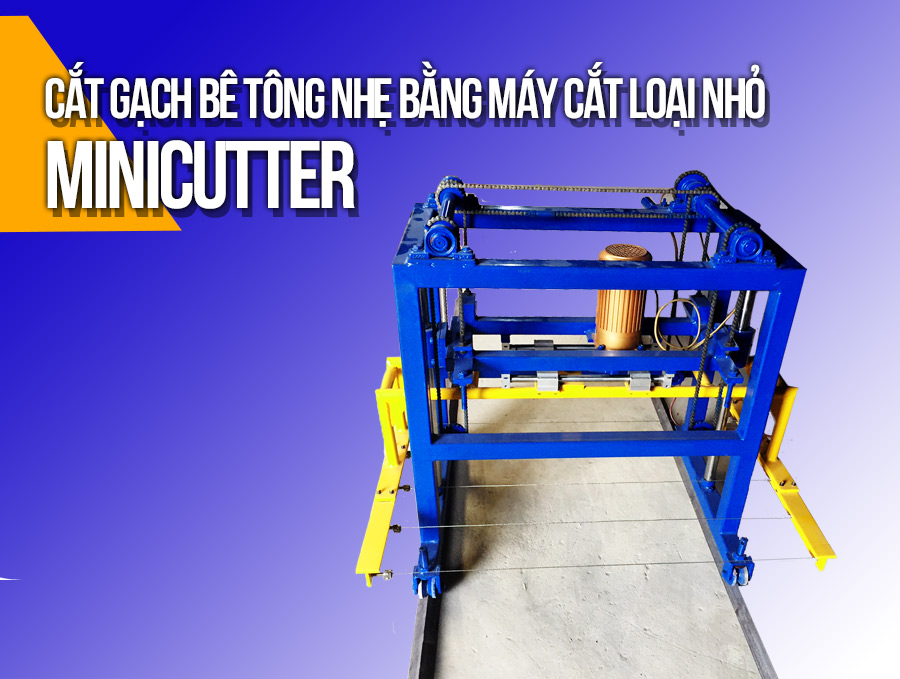 Được sản xuất tại Việt Nam bởi Công Ty TNHH Thương Mại Và Đầu Tư Thăng Tiến, máy cắt mini MiniCutter dùng dây cắt bằng thép để cắt khối bê tông bọt đúc trong khuôn dài đặt trên bệ xi măng thành các viên gạch có kích thước khác nhau.