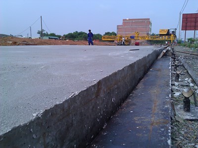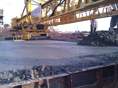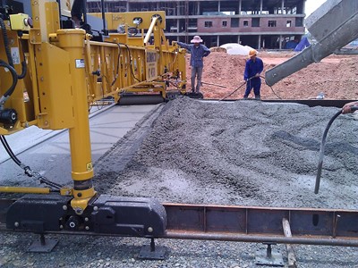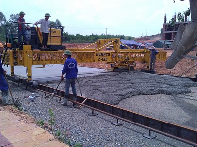 Máy có thể thi công các công trình bằng bê tông xi măng như: đường bộ, sân bay, bãi đỗ xe, container, bến cảng, mặt cầu,vv như hình ảnh dưới đây.