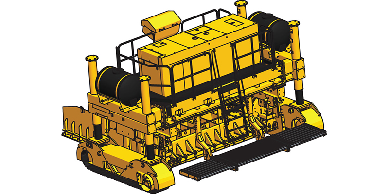 Với động cơ CAT 129,5 kW mạnh mẽ, máy có tốc độ di chuyển và thi công lớn. Ngoài chức năng rải đường, máy còn có thể thi công dải phân cách ở cả hai bên phải và trái.